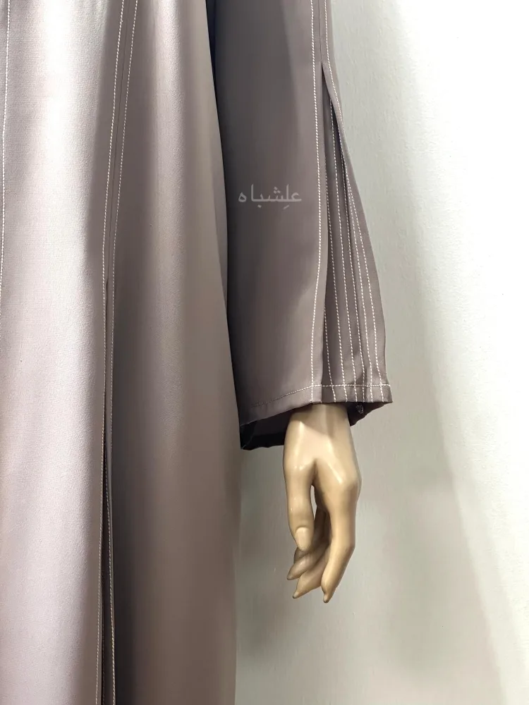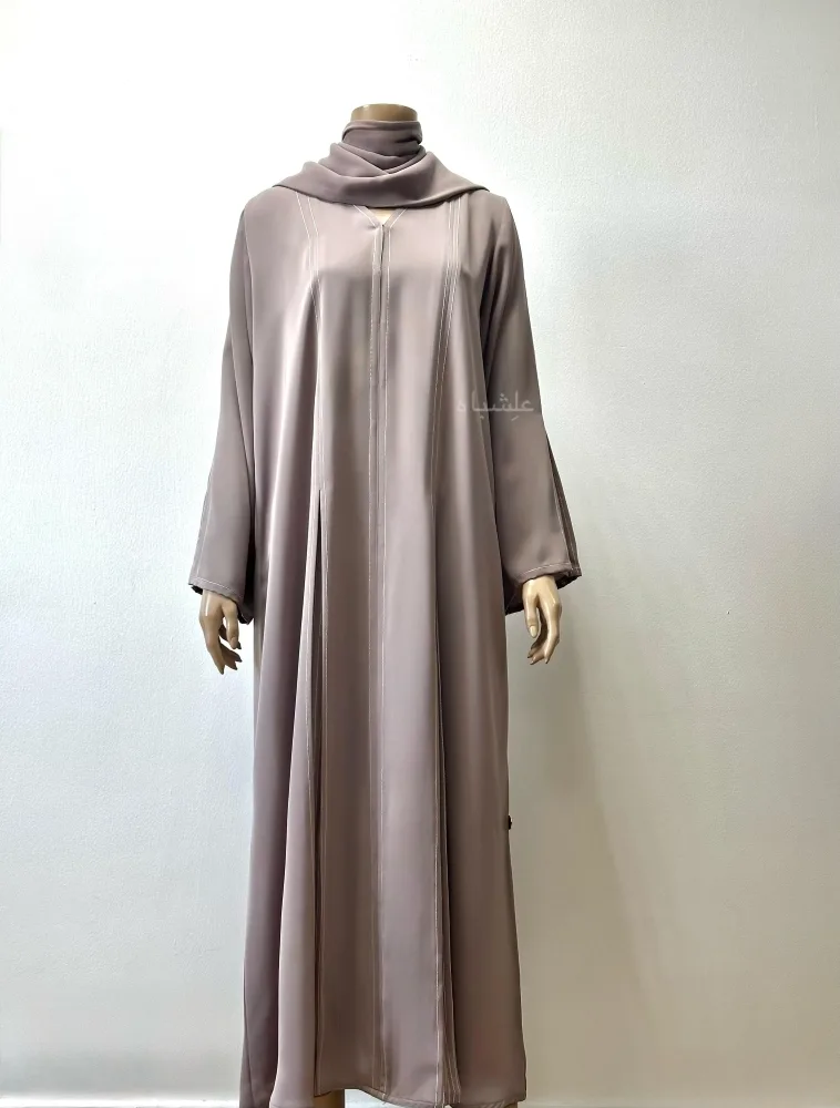 The soft mauve tone pairs beautifully with various skin tones, offering a neutral shade that’s versatile for both day and evening wear. Whether you’re heading to a casual gathering or dressing for Jummah, this abaya delivers a comfortable yet polished presence.