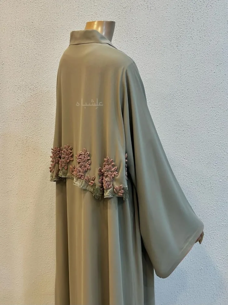 The Bloom Layered Abaya by Alishbah redefines modern abaya designs with its unique coat-style layer and soft inner dress. This abaya dress strikes the perfect balance between style and comfort, making it an ideal choice for the contemporary woman. The floral embroidery delicately spread across the back creates a thoughtful highlight, adding character to the overall design.