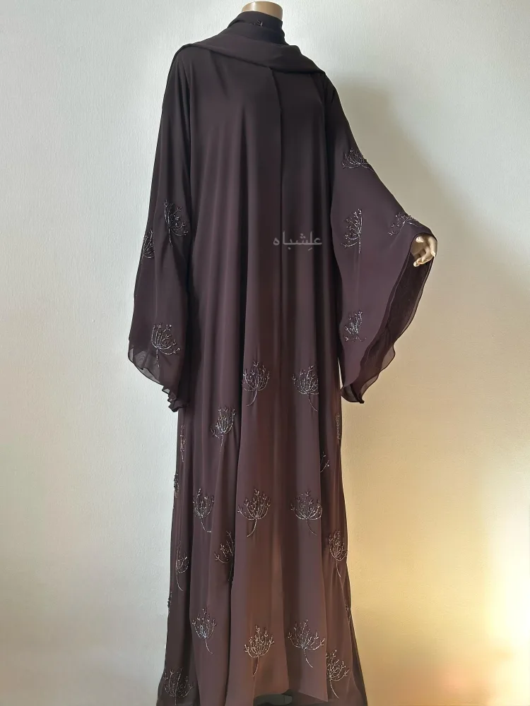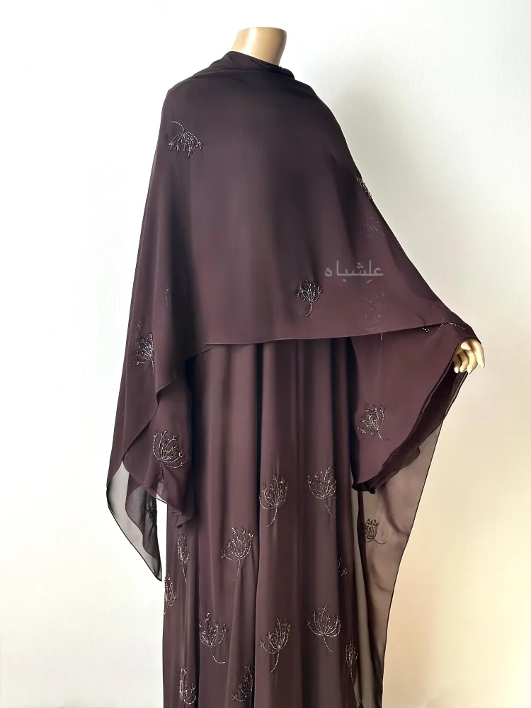 - Handworked bead and cut stone embellishments throughout the abaya and sheila
