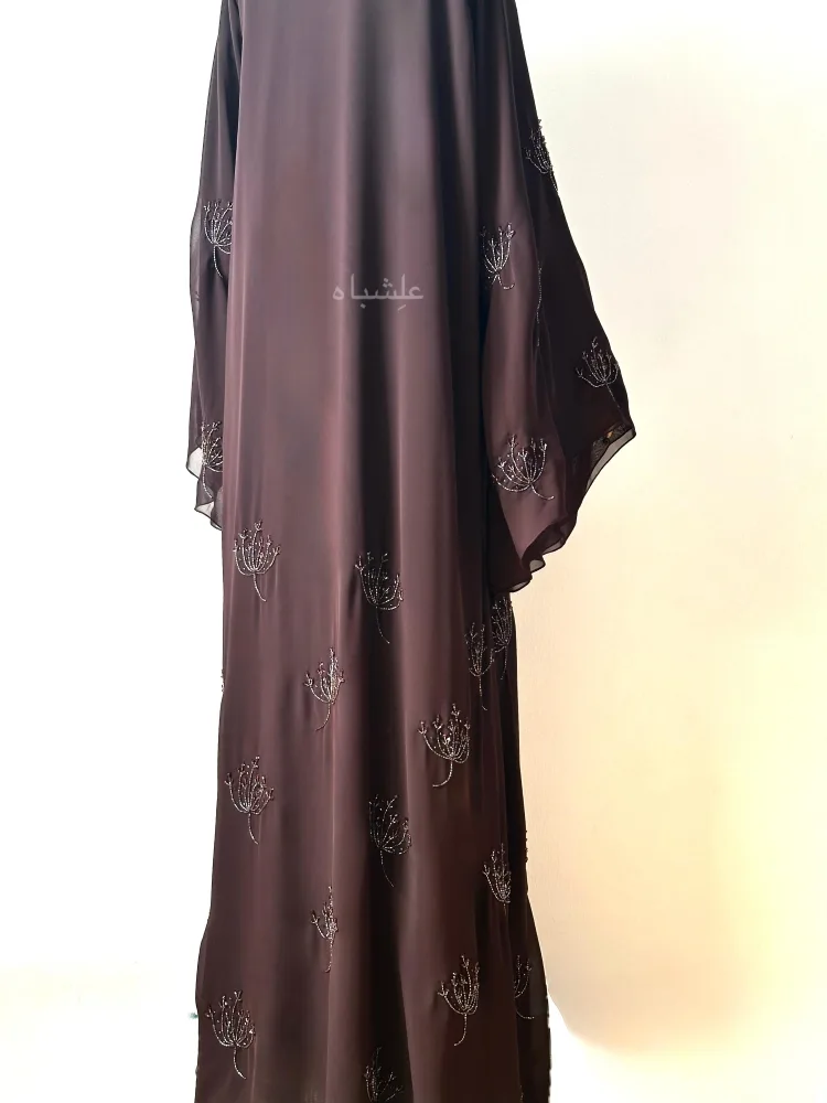 This dark brown chiffon abaya is more than just beautifulโitโs made to last. The stitching is neat, strong, and durable. The handwork is done with care, ensuring each bead and stone is securely attached. The fabric is breathable yet strong enough to hold shape after multiple wears and washes.