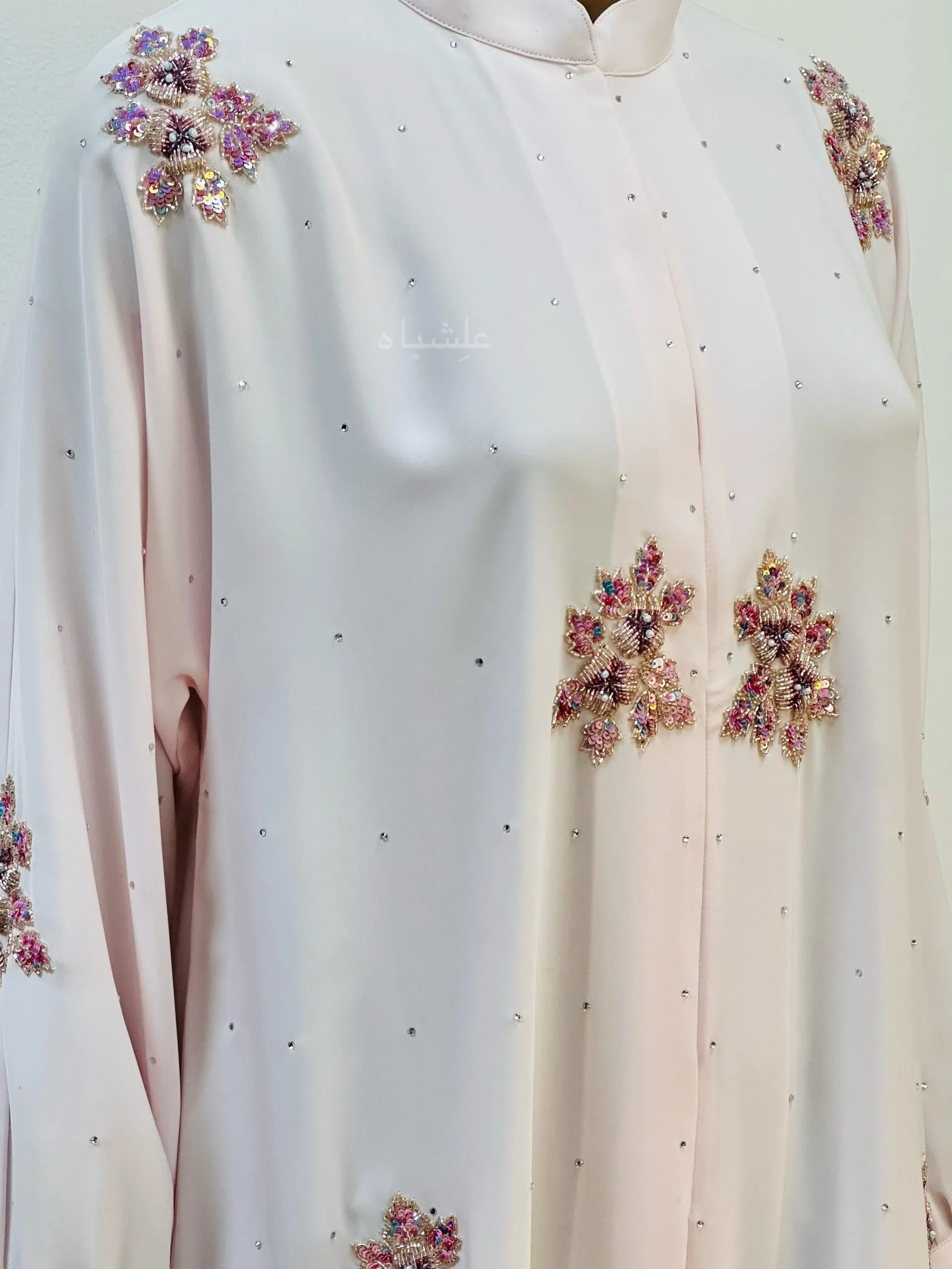 - Sparkling Stones: Strategically placed sparkling stones enhance the floral designs without overwhelming them. This subtle glamour makes the abaya suitable for both formal occasions and casual outings.