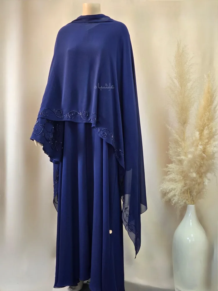 🌙 Key Features – Navy Chiffon Abaya