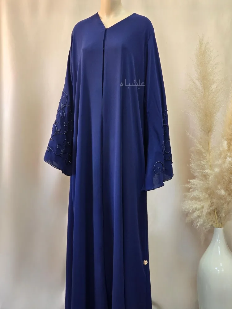 This navy chiffon abaya is a part of our commitment to creating high quality abayas without compromise. We focus on wearable designs that are long-lasting, easy to maintain, and never mass-produced.