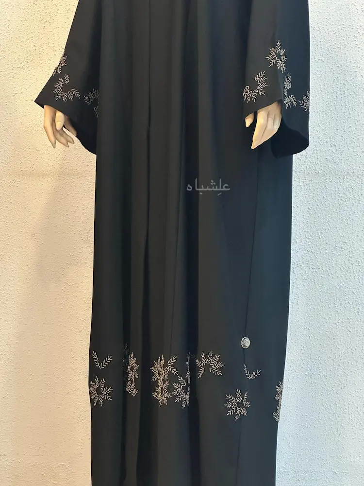 This placement ensures that the body of the abaya remains calm and pure,