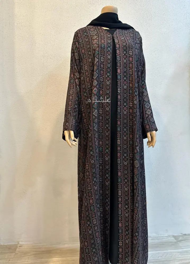 The structured geometry of the print adds visual depth without overpowering modest style. Its cotton-like texture offers ease of movement, while the Noor inner lining ensures all-day comfort and a polished finish — a perfect balance of style and practicality.