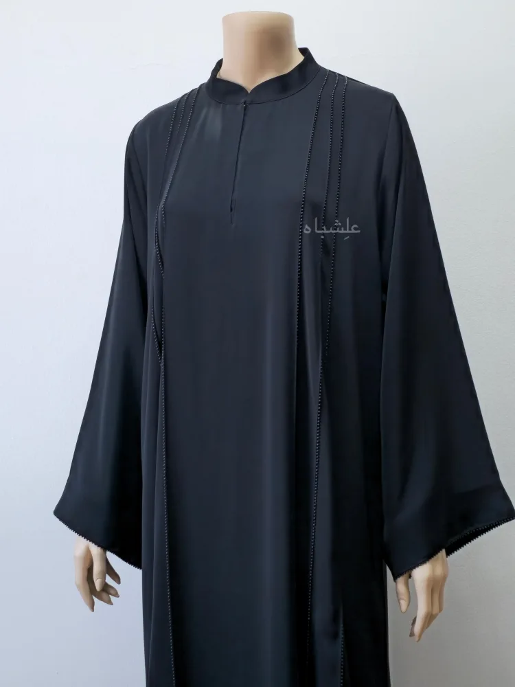 Alishbah Abaya ensures that every abaya design is created with precision and care. This abaya dress is perfect for formal gatherings, evening outings, and daily wear. Whether you’re looking for the best abayas in UAE or a modest yet fashionable abaya dress, this piece delivers on both style and comfort. The pearl embellishments add a subtle charm, making it a standout in any wardrobe.