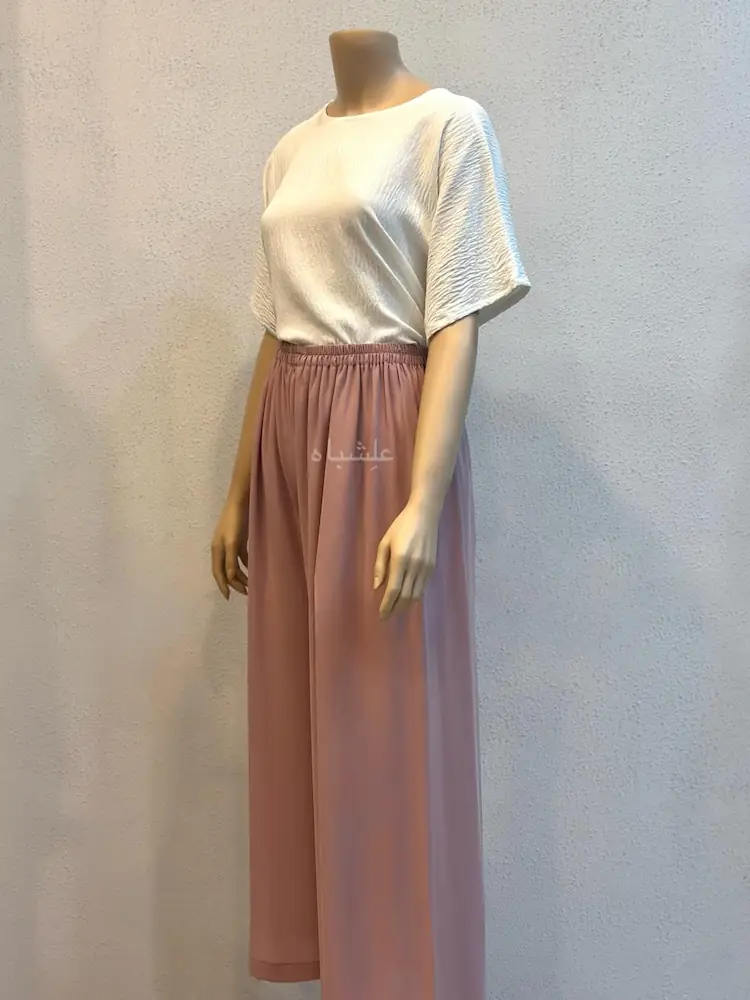- Fabric & Texture: Egyptian Crape outer — smooth drape, airy structure; inner top in CY for soft stability; pant in Egyptian Crape for flow.