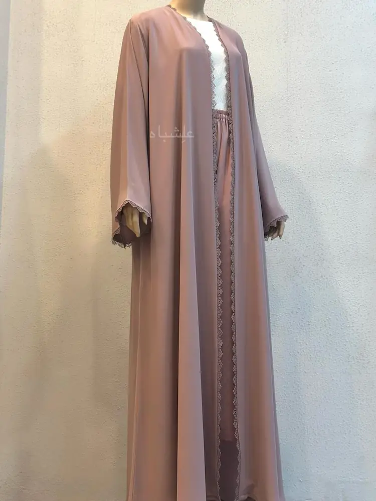 A: Yes. The refined cut and lace detailing make it a modern abaya option for formal dinners, office events, and nikah gatherings.