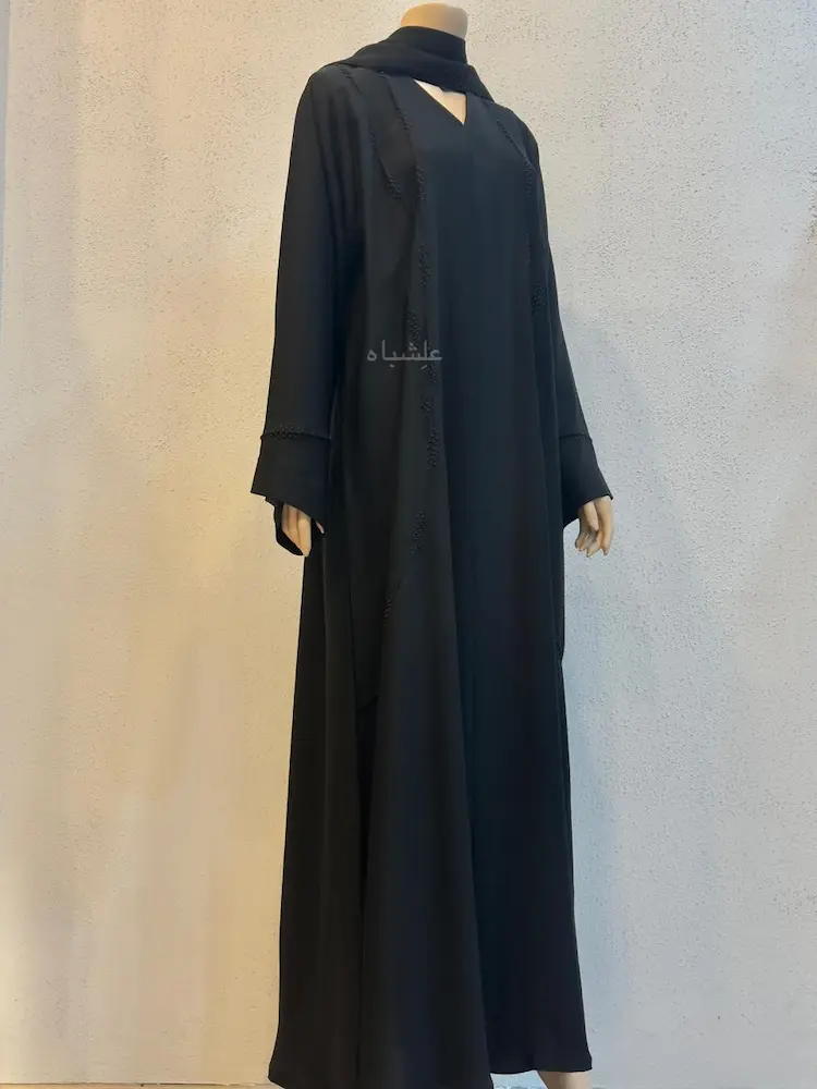 for its smooth fall and long-wear comfort. The structure allows the abaya to move as a single, continuous form,