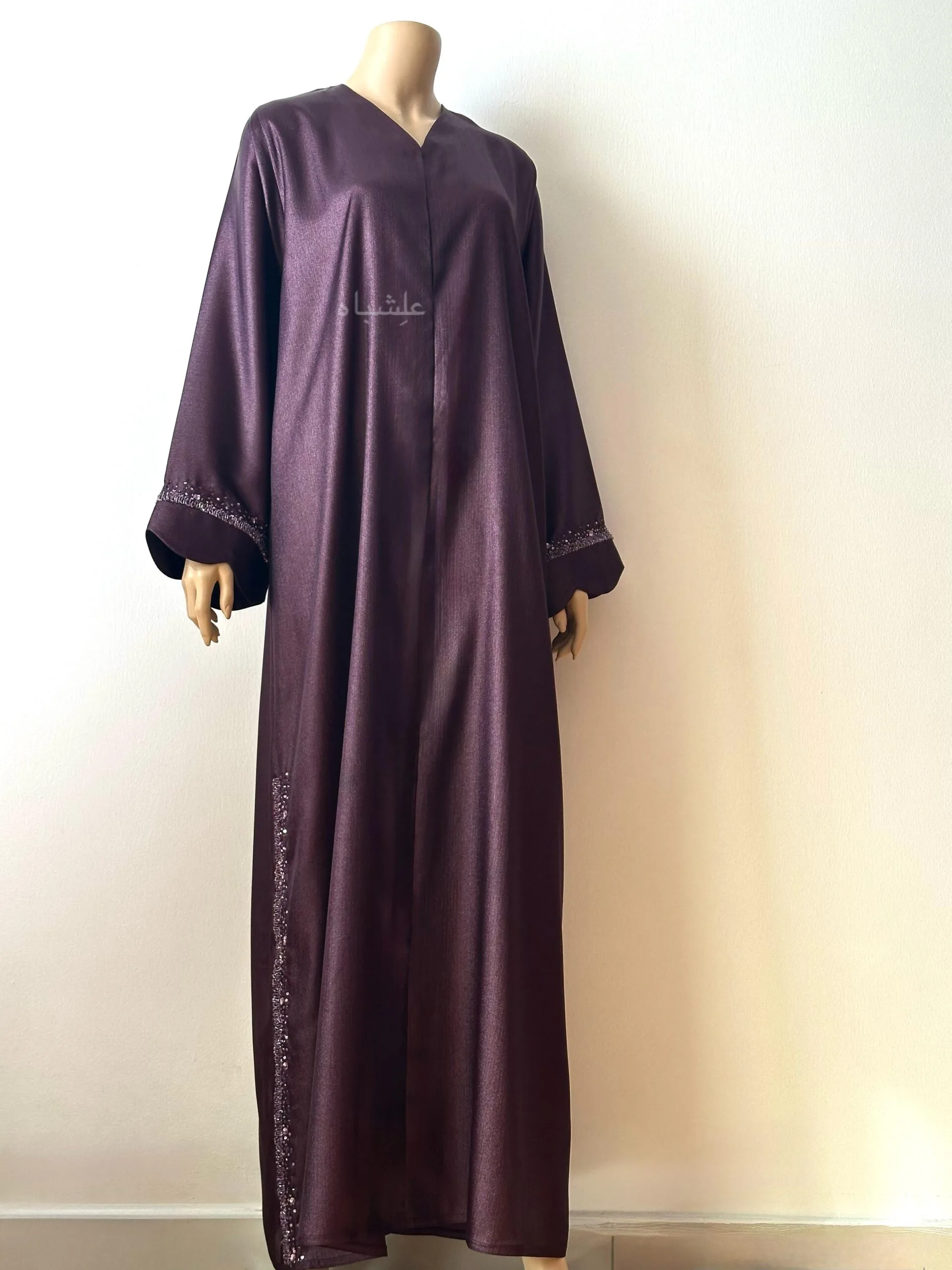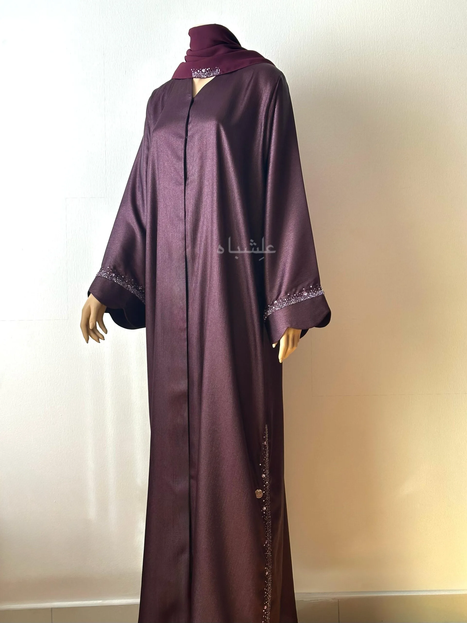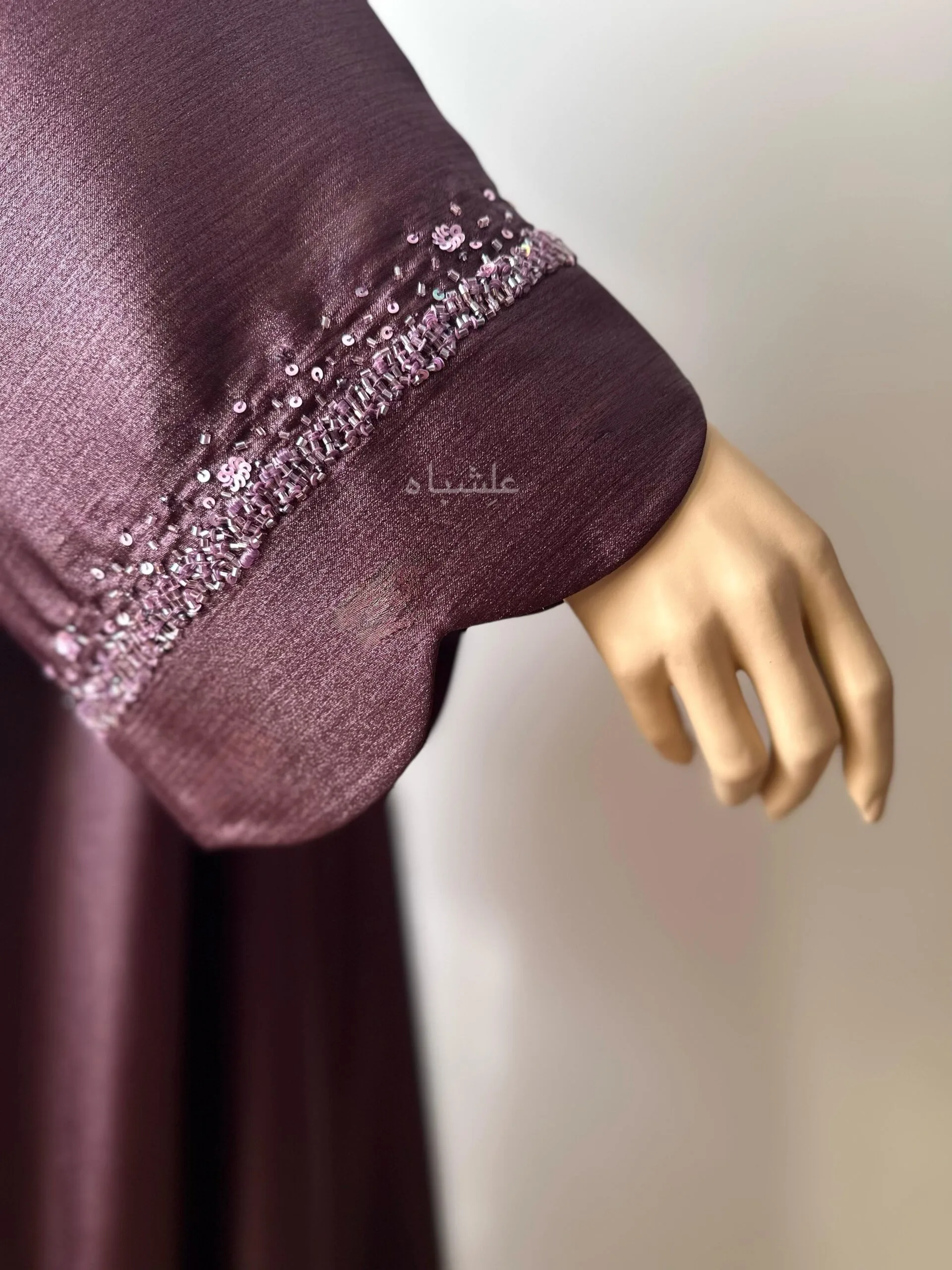 The Twilight Glimmer Abaya is a testament to expert craftsmanship and luxurious fabric. Made from premium Marya satin, this high-quality abaya showcases a smooth, rich texture with a natural sheen. Designed for those who appreciate timeless abaya designs, this abaya dress blends tradition with modern artistry.