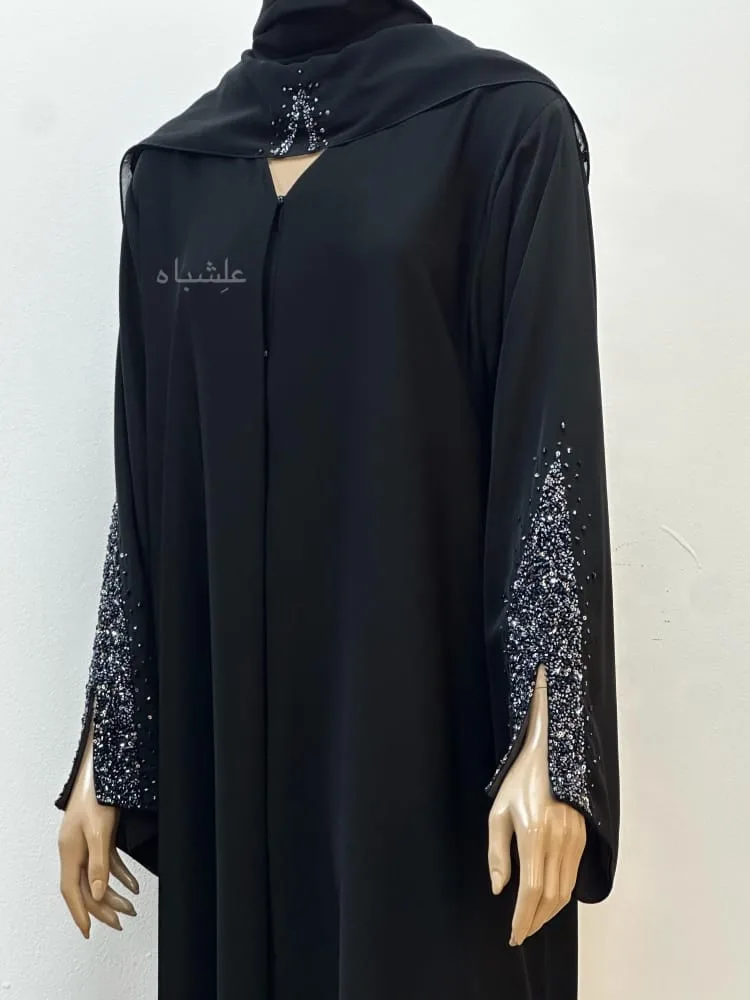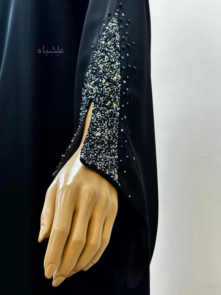 Twilight Spark Abaya by Alishbah โ Premium Black Abaya with Handcrafted Beadwork